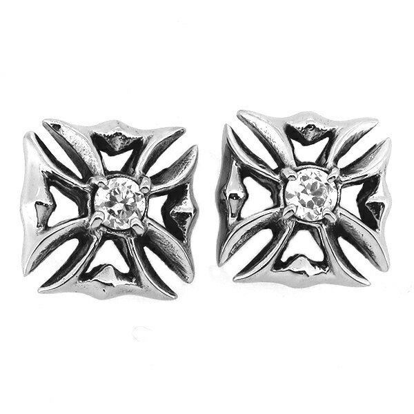 クロス スタッズピアス 2P 両耳用 ホワイトCZ アイアンクロス 鉄十字 ジルコニア ピアス イヤリング サージカルステンレス 金属アレルギーフリー メンズ レディース 男性 女性 アクセサリー ギフト プレゼント おしゃれ