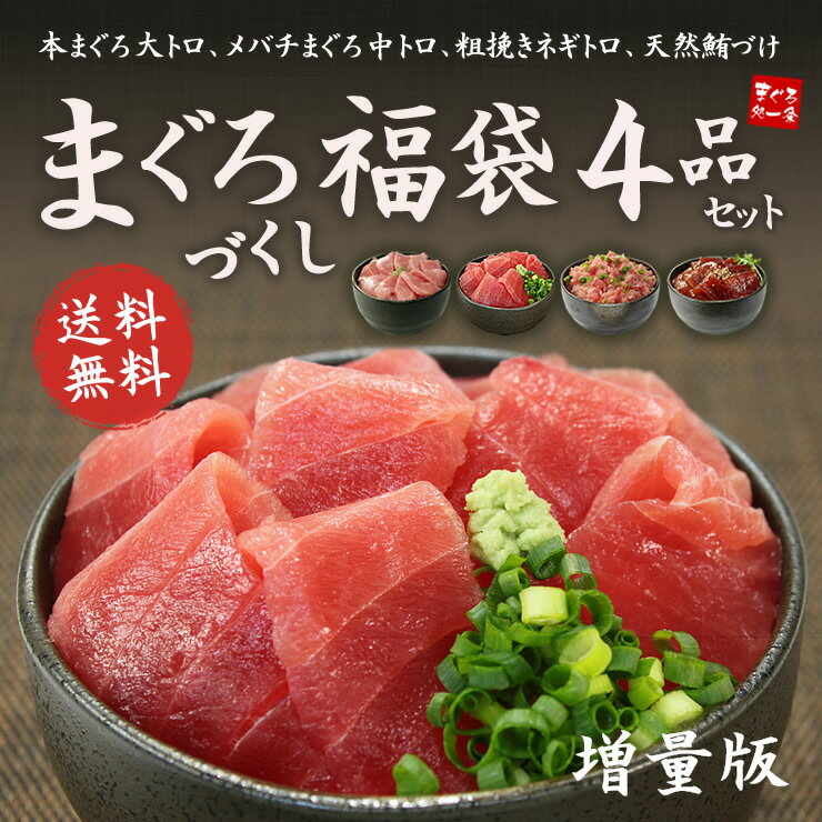 【送料無料】まぐろ尽くし福袋増量版!本マグロ大トロなど色々なマグロが勢揃い!たっぷり4品860gお届け■全品自然解凍でOK(刺身 海鮮丼 お年賀 敬老の日 ギフト 御祝 内祝)《not-ds1》〈ds1〉[[マグロ尽くし福袋-2p]