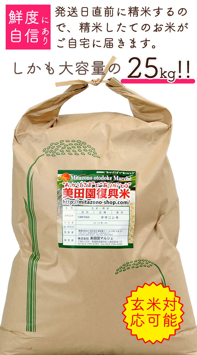 【ふるさと納税】平成30年度産新米! 美田園復興米 ササニシキ 25kg(玄米対応可)