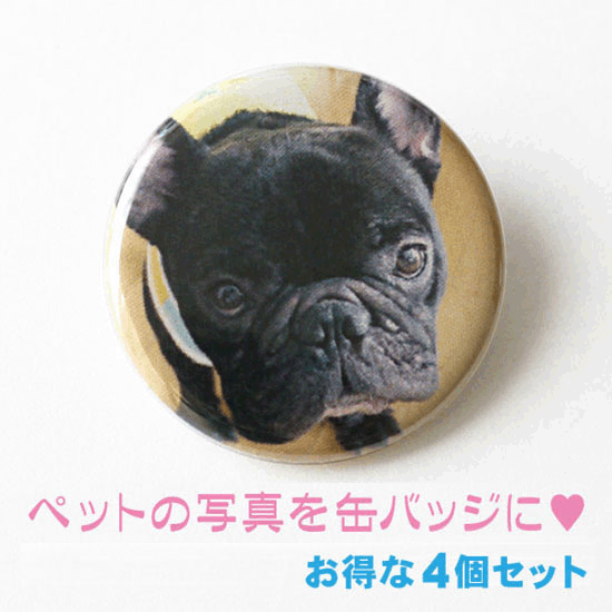 犬、猫、ペットの写真入り缶バッジお得な4個セット【メール便可】