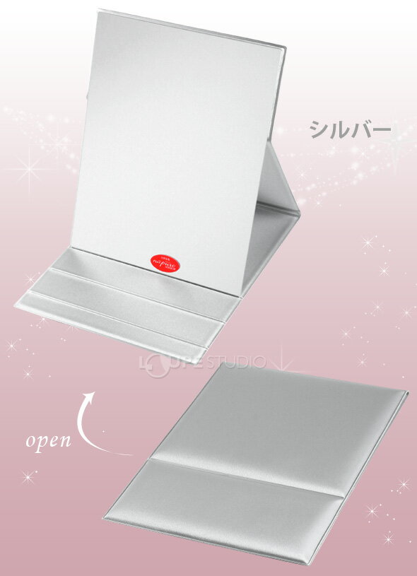 小さい2倍の拡大鏡付き!Lサイズ:175mmx225mm(等倍鏡)スタンドミラー 卓上 折立 コンパクトミラー [M] HP-40 [鏡] 角型 ナピュアミラー プロモデル 商品番号:HM-HP-10価格:900(税別)特許の映り・輝き・ナピュアガラスミラー仕様!持ち歩きにも便利な、ビューティーアドバイザーが愛用するプロモデル折立ミラー。